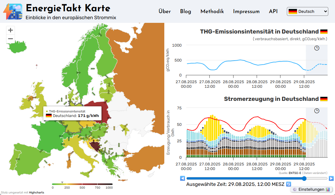 Visualisierungen zur THG-Emissionsintensität des Stroms in Europa