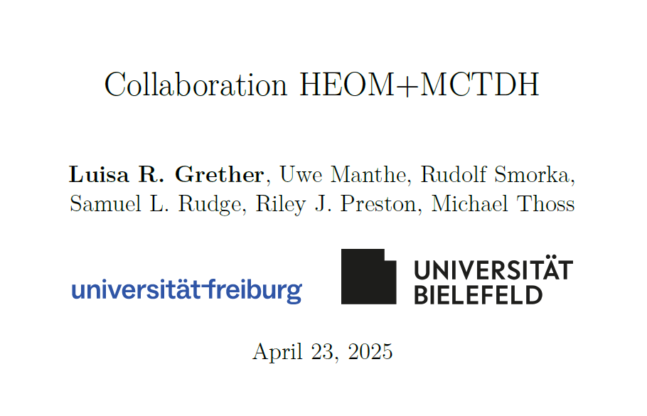 Im Rahmen meiner Promotion in der theoretischen Physik beschäftige ich mich mit Berechnungsmethoden für die Zeitentwicklung offener Quantensysteme. Schwerpunkt ist die Weiterentwicklung der Hierarchischen Quantenmastergleichungsmethode.